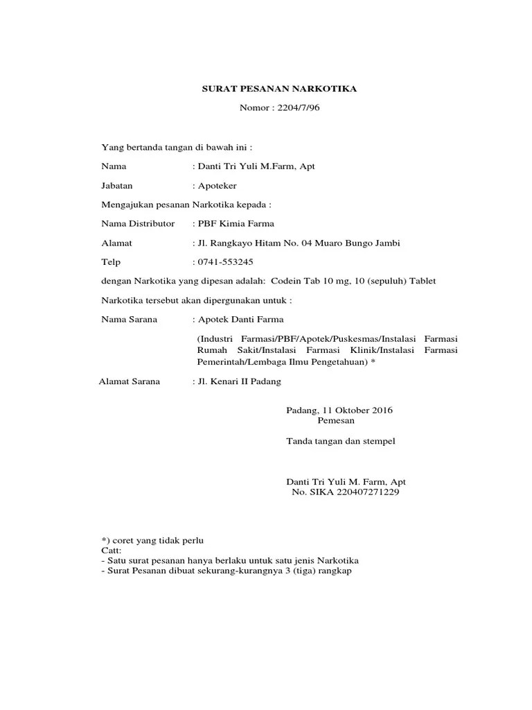 Surat Pesanan Obat Agnes from imgv2-1-f.scribdassets.com Contoh surat pesanan ini dapat digunakan untuk kamu perorangan ataupun perusahaan. Contoh surat pesanan e catalogdeskripsi lengkap. Contoh surat pesanan barang elektronik. Download contoh surat undangan rapat. Penjelasan lengkap seputar contoh surat niaga yang baik dan benar. Surat pesanan adalah surat yang di buat oleh pembeli kepada penjual yang isinya untuk membeli produk yang diinginkan. Penawaran barang sering terjadi dalam lingkungan surat niaga penolakan pesanan adalah surat yang dibuat oleh perusahaan supplier atau penyedia. Contoh surat pengunduran diri yang baik dan benar.