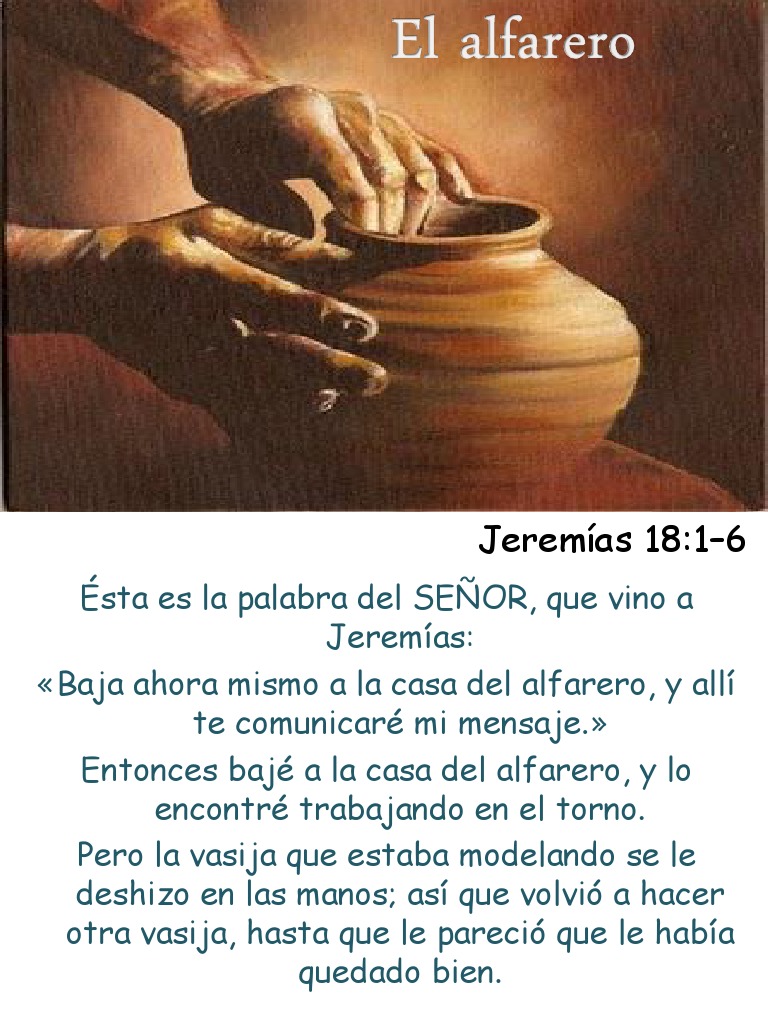 Fundamento Apostolico Vasijas En Manos Del Alfarero from 3.bp.blogspot.com Listen to el alfarero by delaesperanza for free. En las manos del alfarero. El alfarero is a english album released on oct 2012. Browse radio stations more info. Un dia orando le dije a mi señor tu el alfarero y yo el barro soy moldea mi vida a tu parecer haz como tu quieras asme un nuevo ser. A veces el alfarero usaba un molde dentro del cual apretaba el barro para que se le grabasen los detalles. Aprenda a tocar a cifra de el alfarero (evan craft) no cifra club. Последние твиты от el alfarero (@lalfareria).